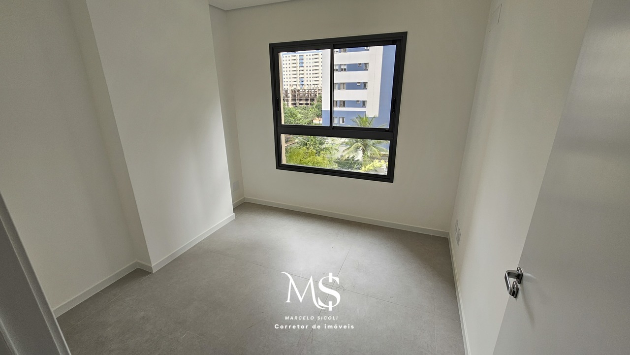 Tem 118m2 de área útil. Apartamento de terceiro andar. Ampla sala integrada com a cozinha e área de serviço. Varanda gourmet com vista para a Avenida Flamboyant. Tem espaço para um grande closet, um banheiro completo, duas semi-suites e um quarto além de uma suíte. Totalizando 4 quartos e três banheiros portanto.