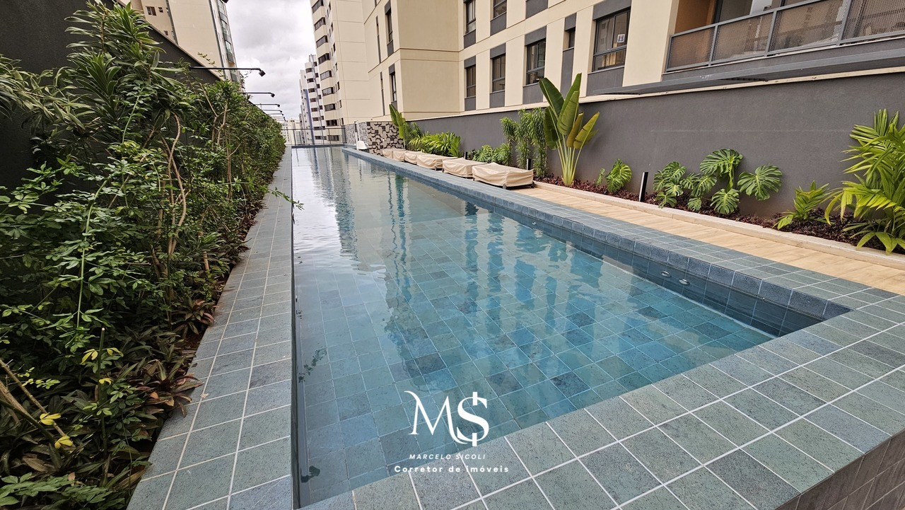 Tem duas vagas de garagem. Condomínio bastante novo e com estrutura de lazer super completa com piscina com raia de 25 metros, quadra de esportes, salão de festas e salão gourmet, academia com 2 ambientes(interno e externo), brinquedoteca, churrasqueira, bicicletário, vagas para carros elétricos etc.