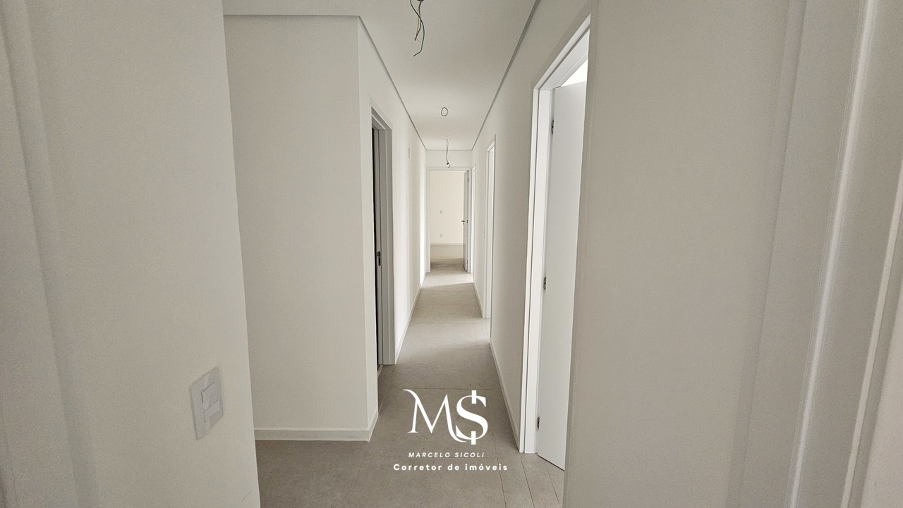 Tem 118m2 de área útil. Apartamento de terceiro andar. Ampla sala integrada com a cozinha e área de serviço. Varanda gourmet com vista para a Avenida Flamboyant. Tem espaço para um grande closet, um banheiro completo, duas semi-suites e um quarto além de uma suíte. Totalizando 4 quartos e três banheiros portanto.