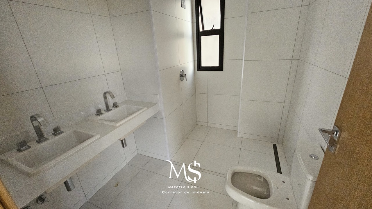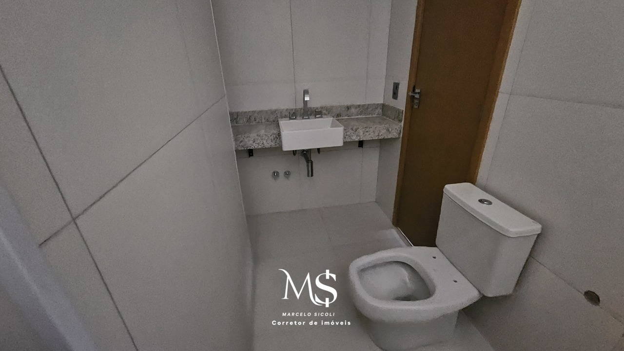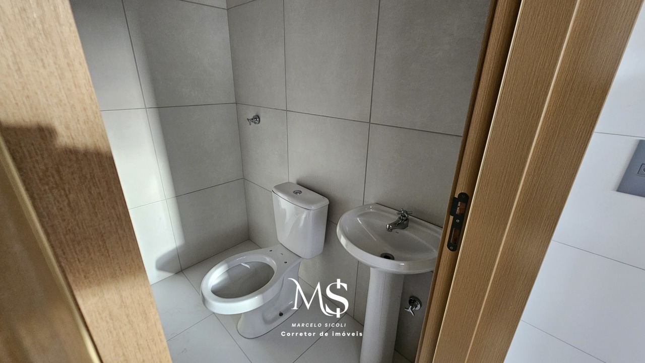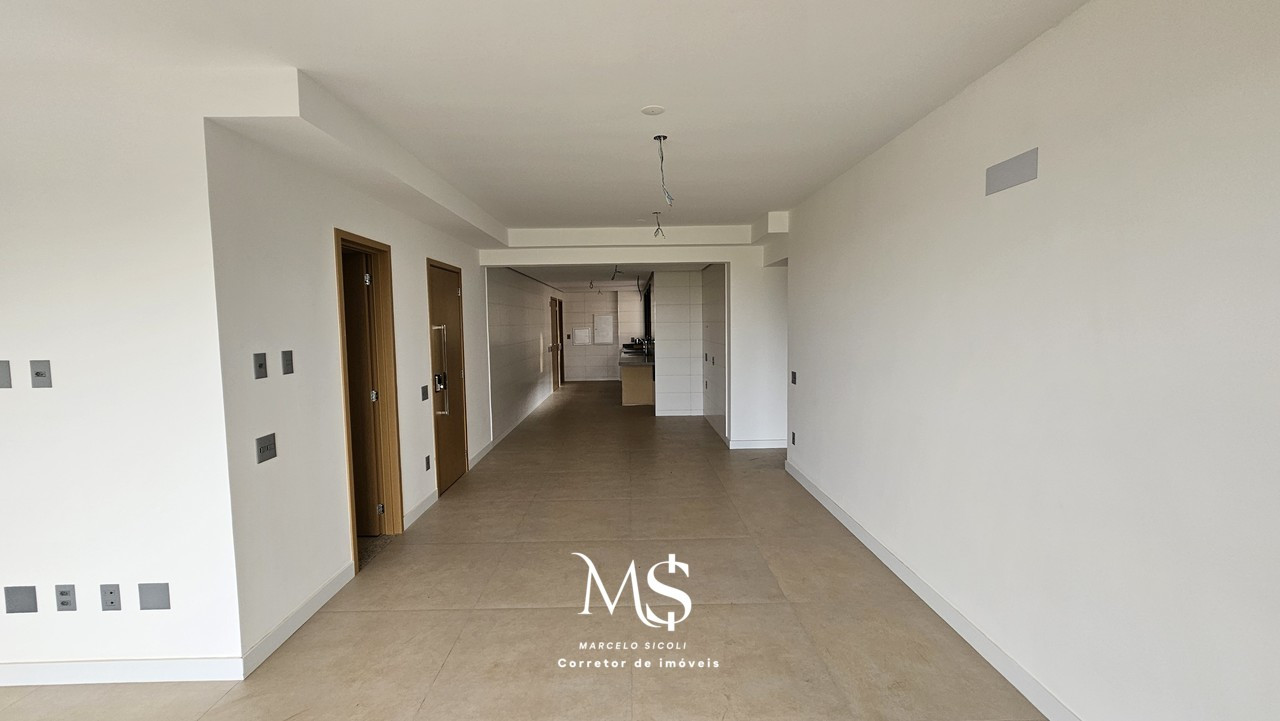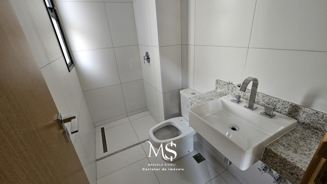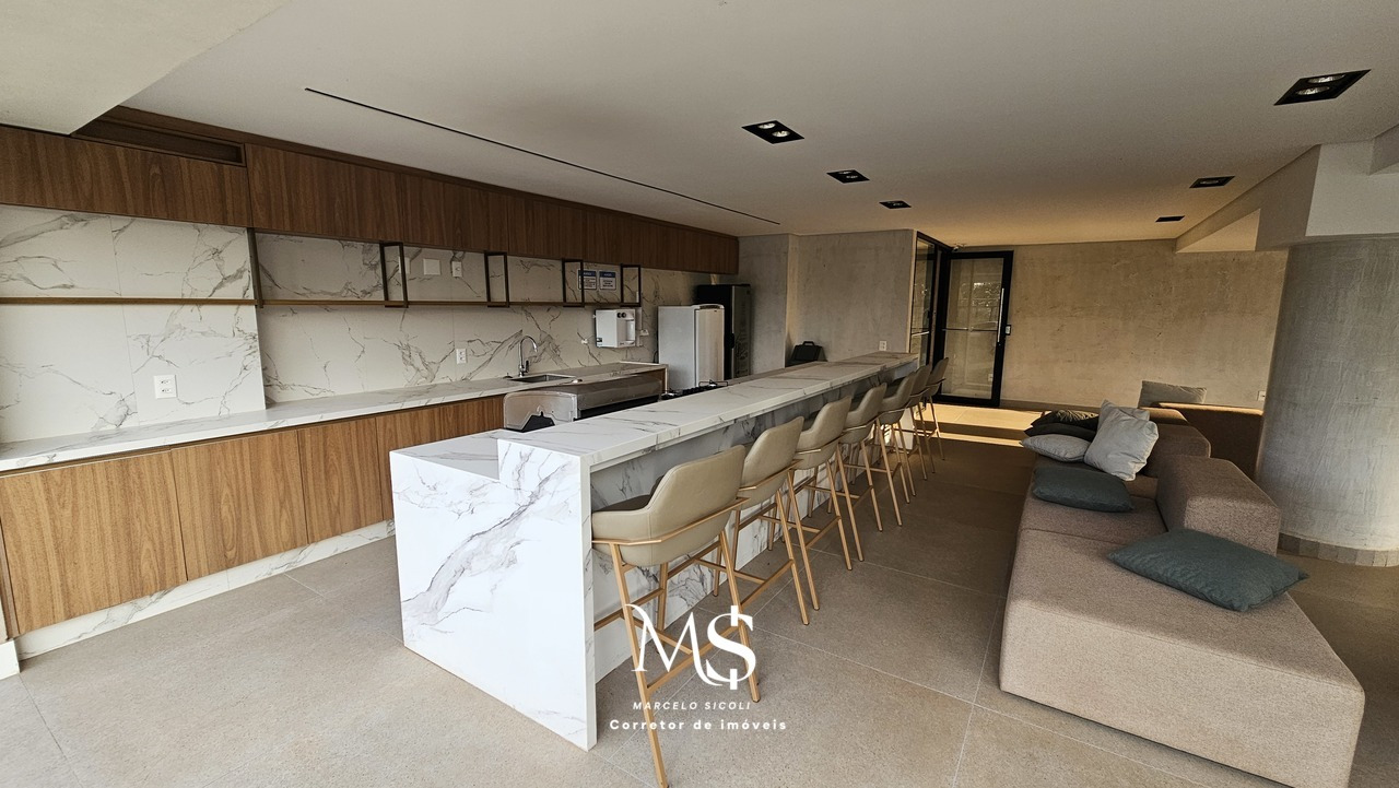 Tem ampla cozinha integrada com a sala e também um banheiro de serviço. Tem duas entradas independentes (social e de serviço). São 3 suítes.