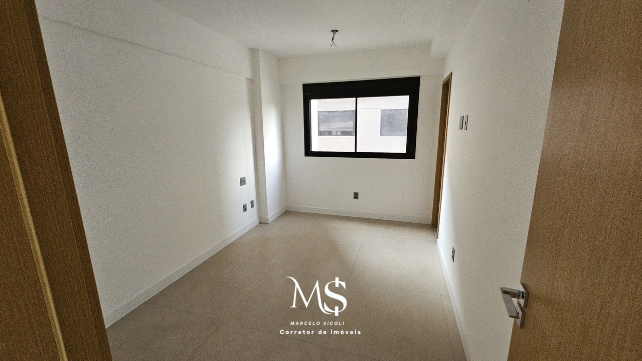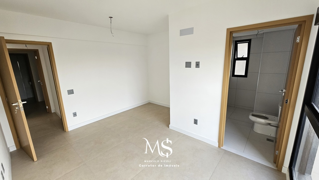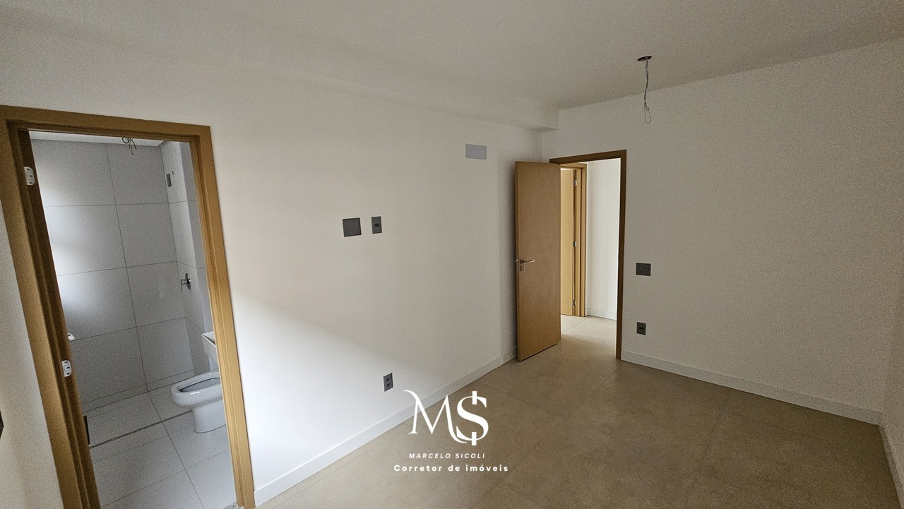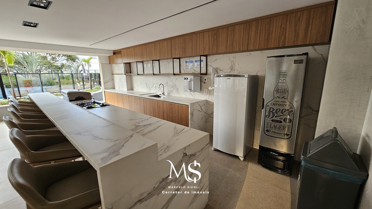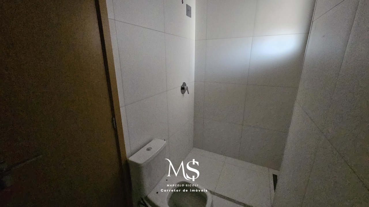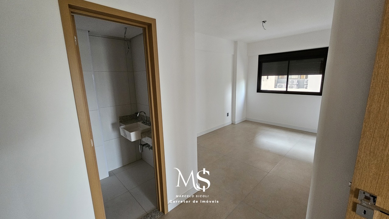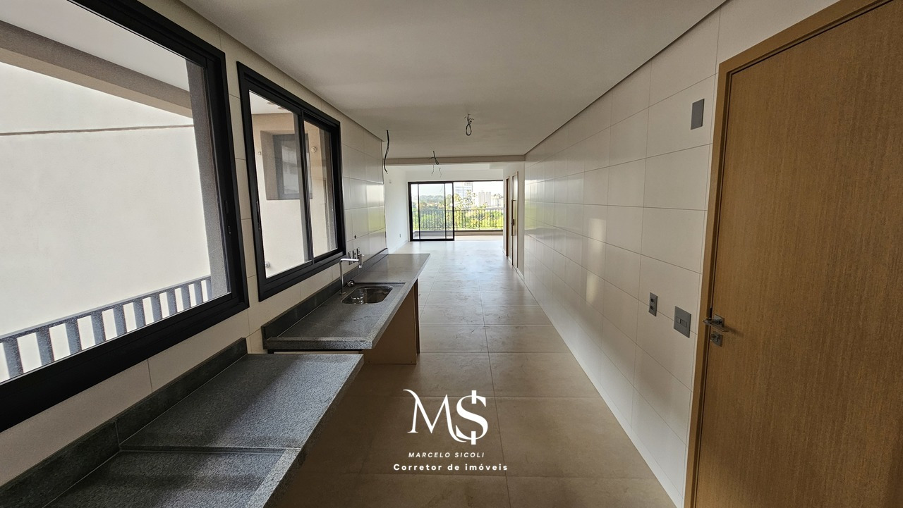 Tem ampla cozinha integrada com a sala e também um banheiro de serviço. Tem duas entradas independentes (social e de serviço). São 3 suítes.