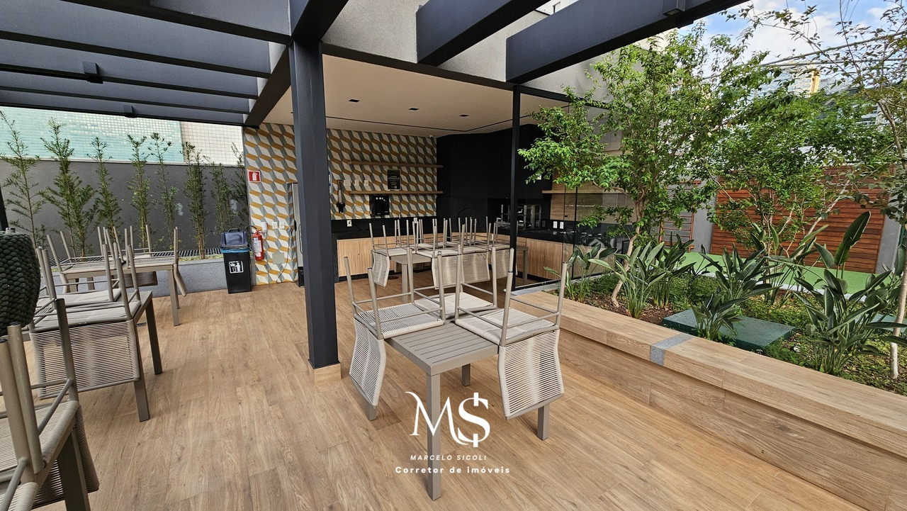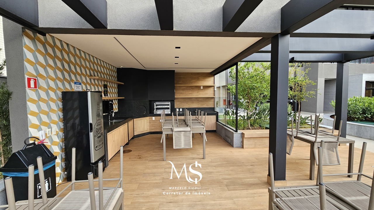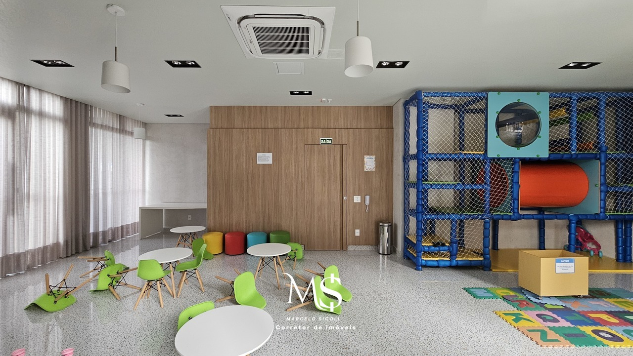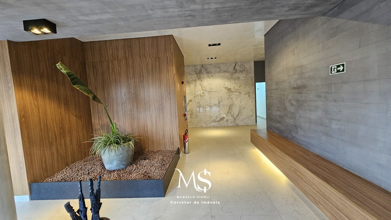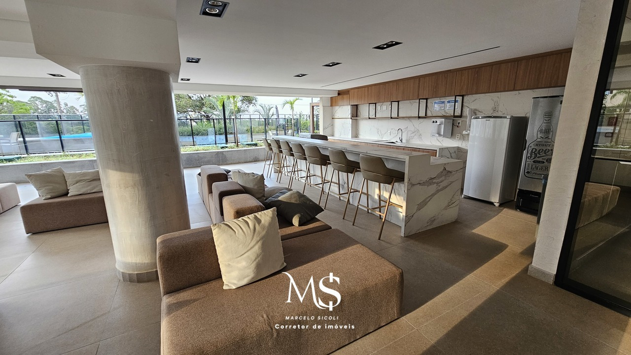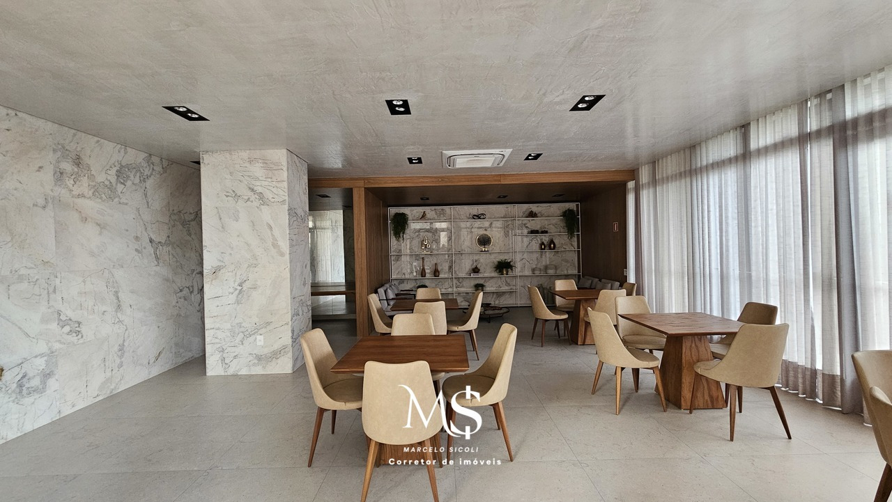 Tem ampla cozinha integrada com a sala e também um banheiro de serviço. Tem duas entradas independentes (social e de serviço). São 3 suítes.